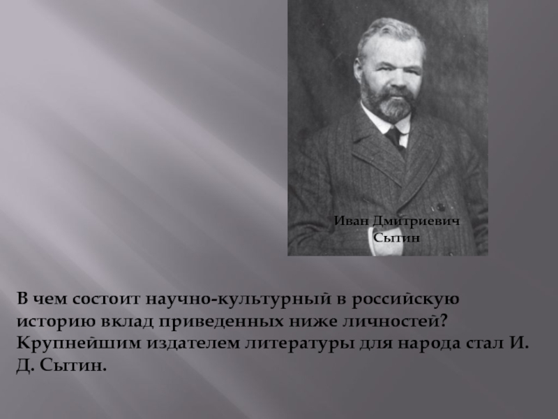 Крупнейшим издателем литературы для народа стал И.Д. Сытин.