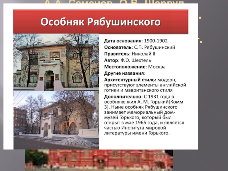 Слайд 30А.А. Семенов, О.В. Шервуд Исторический музей в Москве им. Александра