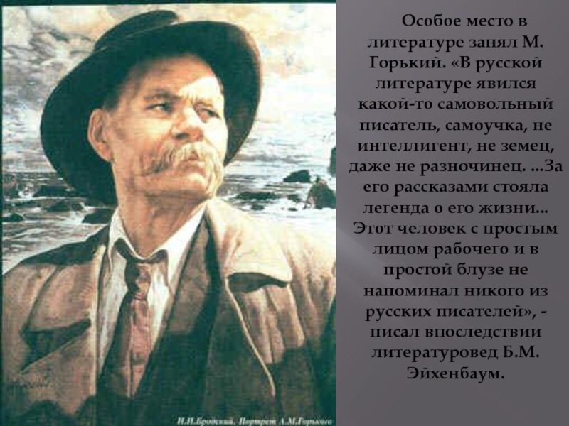 Слайд 12 Особое место в литературе занял М. Горький. «В