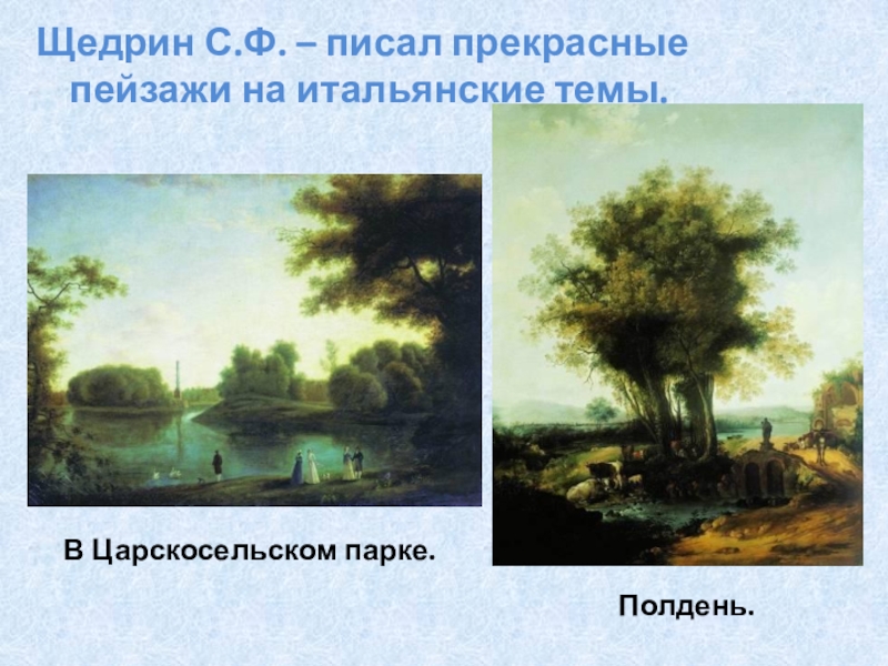 Слайд 15Щедрин С.Ф. – писал прекрасные пейзажи на итальянские темы.