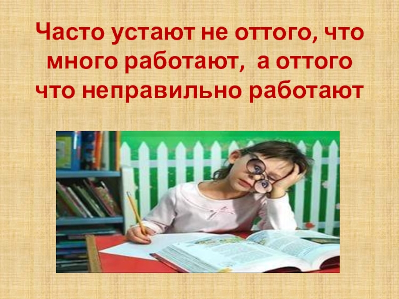 Слайд 2Часто устают не оттого, что много работают, а оттого что