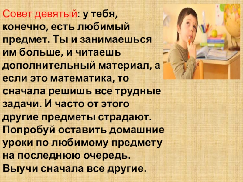 Слайд 11Совет девятый: у тебя, конечно, есть любимый предмет. Ты и