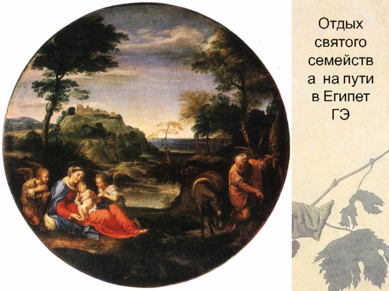 Слайд 55Отдых святого семейства на пути в Египет ГЭ