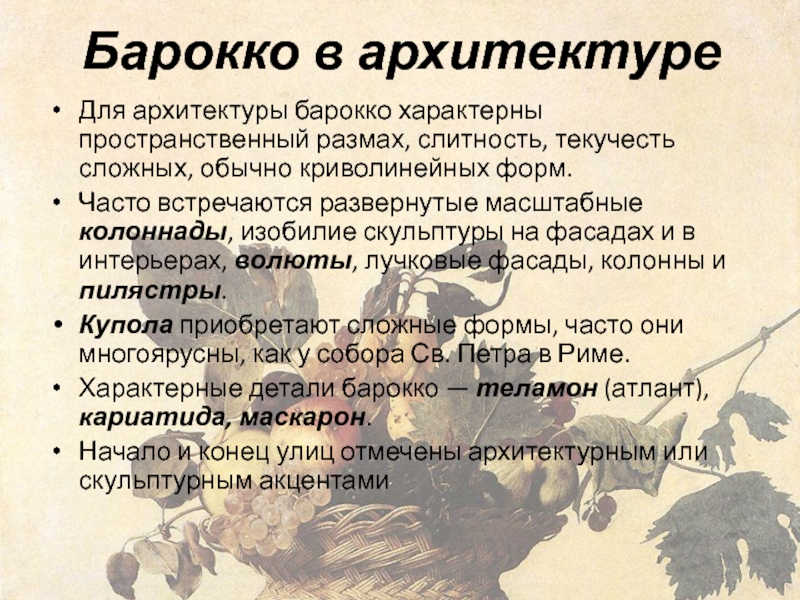 Для архитектуры барокко характерны пространственный размах, слитность,
