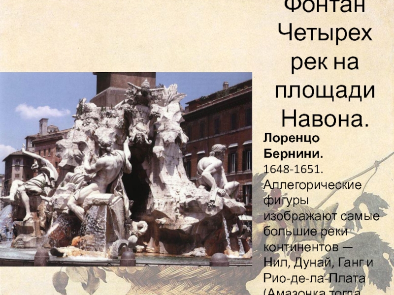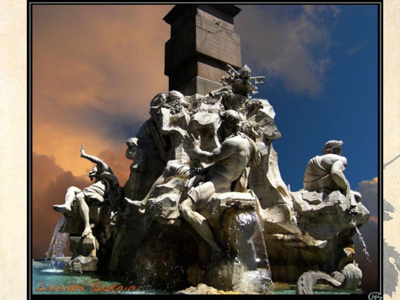Слайд 26Фонтан 4 рек на площади Навона, Бернини.