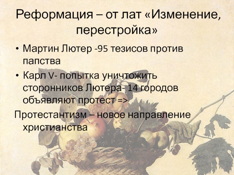 Слайд 3Реформация – от лат «Изменение, перестройка»