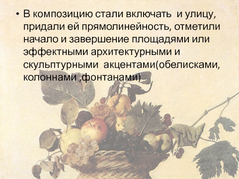 Слайд 11В композицию стали включать и улицу, придали ей прямолинейность, отметили