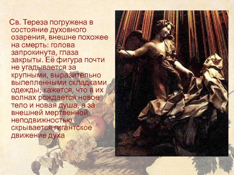 Слайд 43 Св. Тереза погружена в состояние духовного озарения, внешне