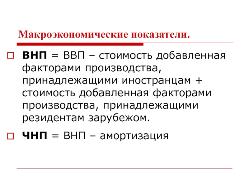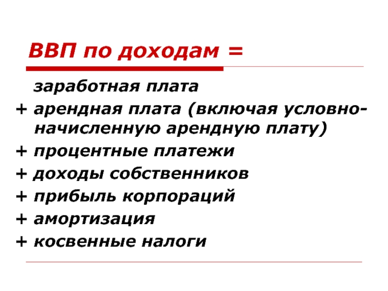 НД – сумма всех факторных доходов, т.е. совокупный доход, заработанный собственниками экономических ресурсов