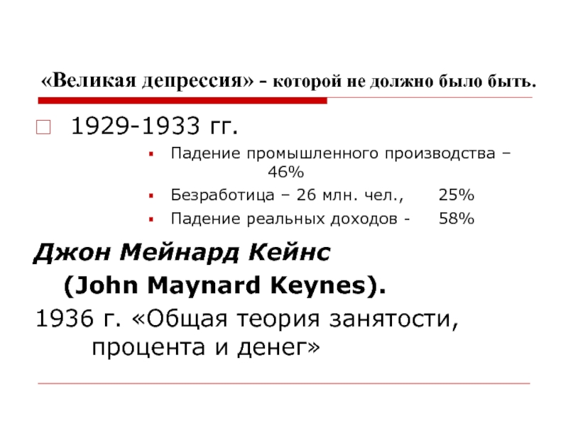 1936 г. «Общая теория занятости, процента и денег»
