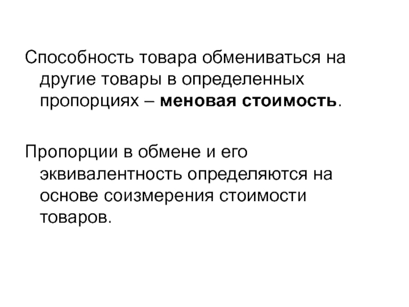 Слайд 7Способность товара обмениваться на другие товары в определенных пропорциях –
