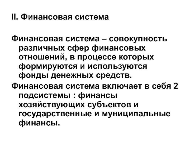 Финансовая система – совокупность различных сфер финансовых отношений,