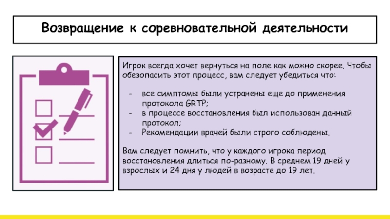 возвращения игрока к тренировочной и соревновательной деятельности.