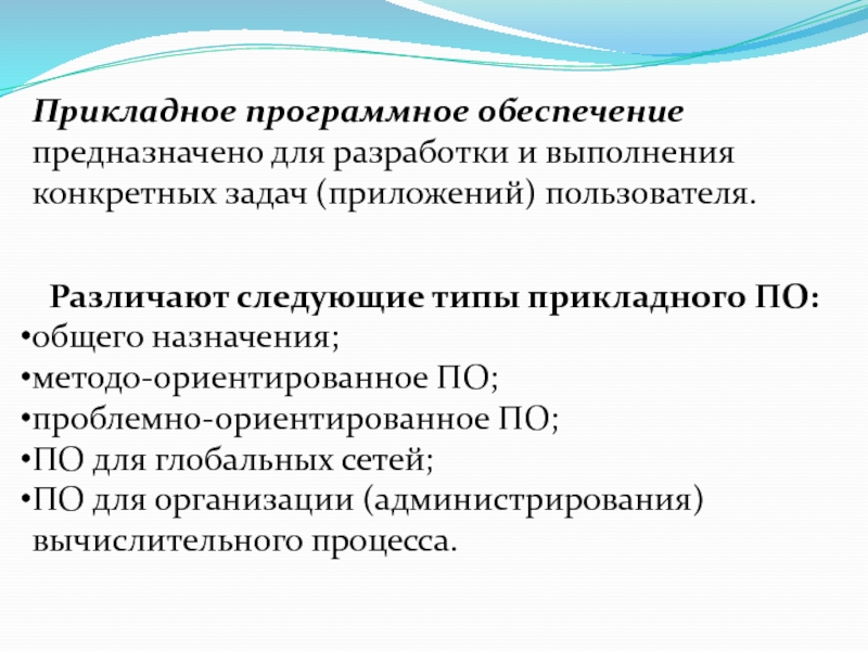 Слайд 32Прикладное программное обеспечение предназначено для разработки и выполнения конкретных задач