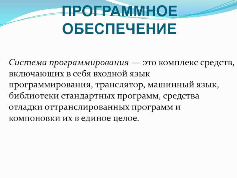 себя входной язык программирования, транслятор, машинный язык, библиотеки стандартных программ,