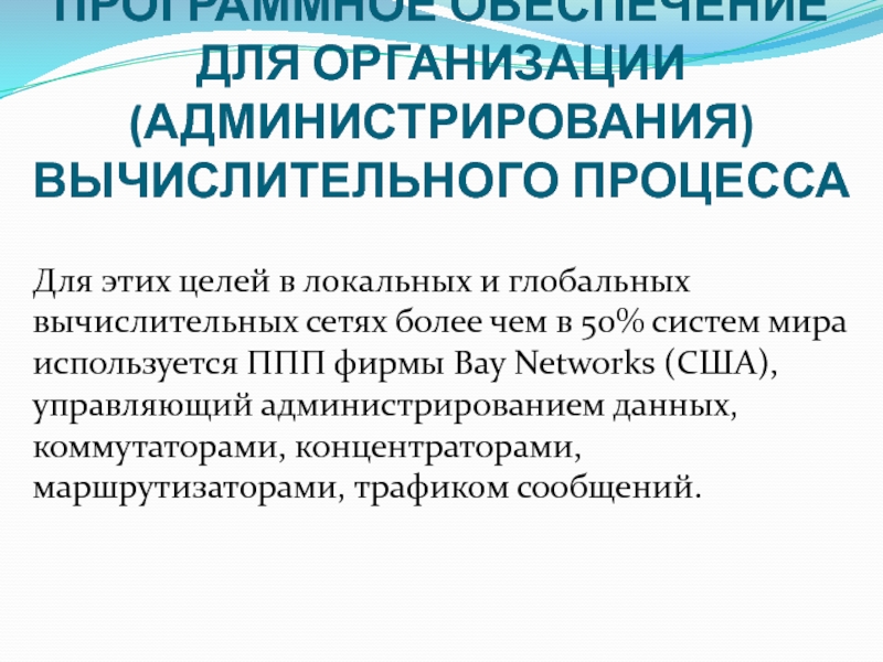 Слайд 37Программное обеспечение для организации (администрирования) вычислительного процесса