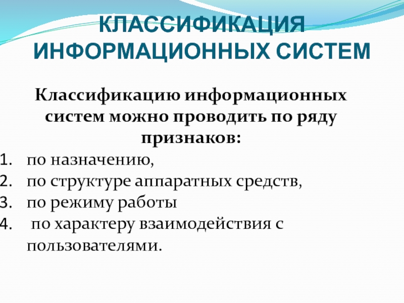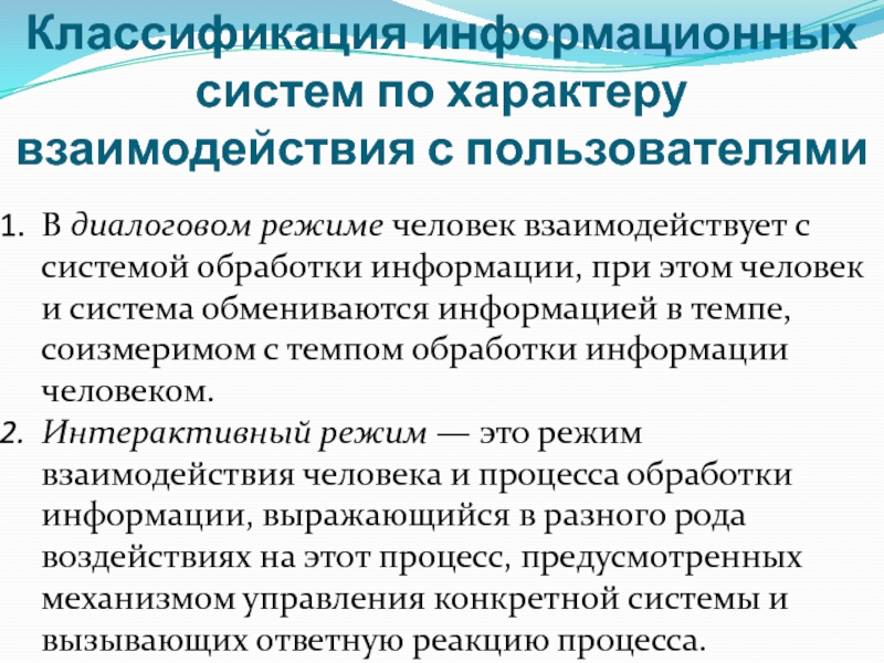 Слайд 14Классификация информационных систем по характеру взаимодействия с пользователями