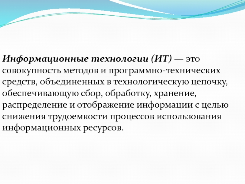 Слайд 8Информационные технологии (ИТ) — это совокупность методов и программно-технических средств,