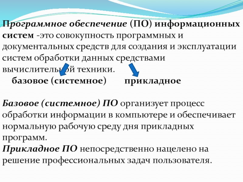 Слайд 24Программное обеспечение (ПО) информационных систем -это совокупность программных и документальных