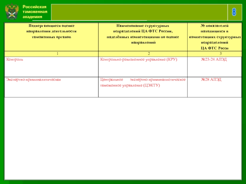 проведения анализа и оценки контрольных показателей результативности деятельности таможенных органов