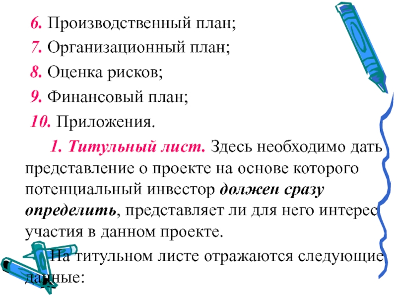 Слайд 11 6. Производственный план;