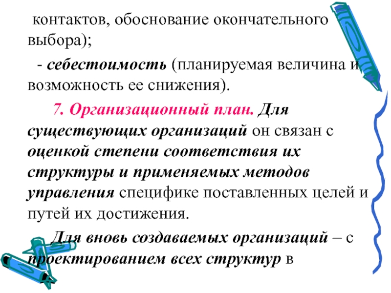 7. Организационный план. Для существующих организаций он связан с
