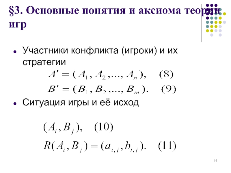 Слайд 14§3. Основные понятия и аксиома теории игр