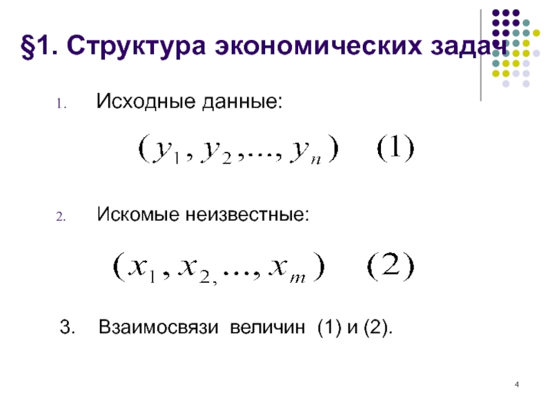 возможно, неравенствами, условие экстремума), связывающая воедино известные характеристики объекта (1) и его искомые характеристики (2).