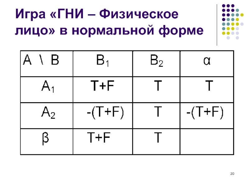 Слайд 20Игра «ГНИ – Физическое лицо» в нормальной форме