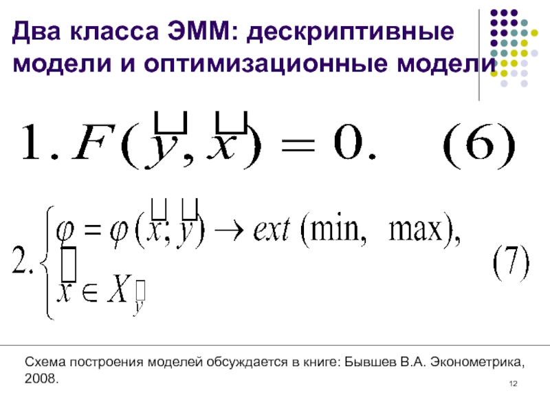 Слайд 12Два класса ЭММ: дескриптивные модели и оптимизационные модели