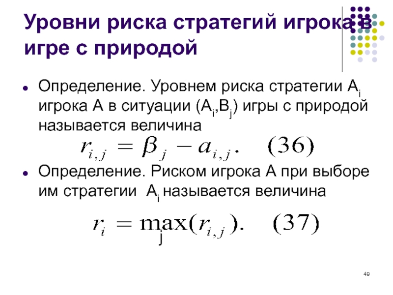Слайд 49Уровни риска стратегий игрока в игре с природой