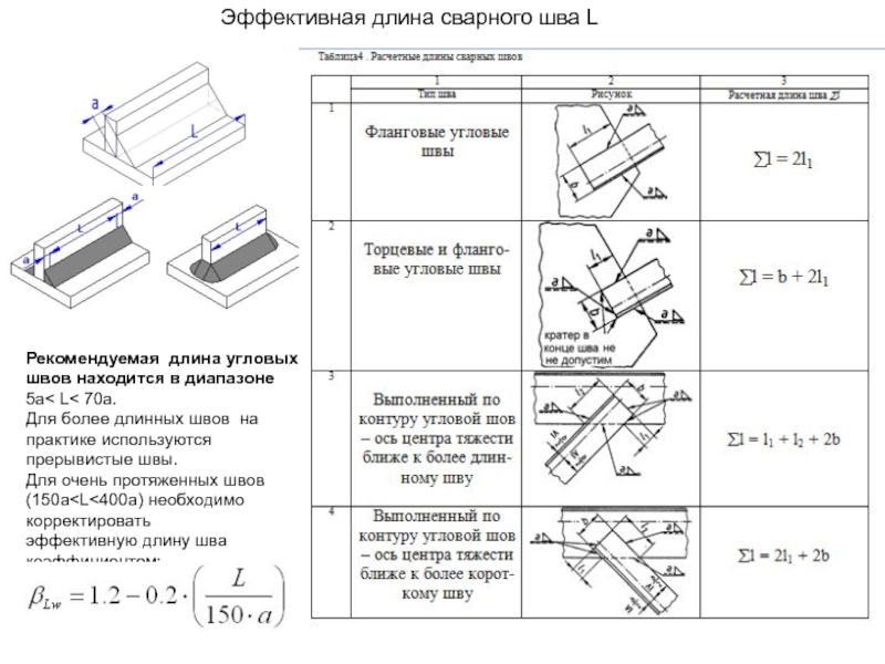 Ее можно принять равной полной длине шва за вычетом его двойной эффективной высоты a. Снижение эффективной длины сварного шва не требуется, при условии обеспечения полноразмерности сварного шва по всей его длине, включая начало и конец шва.