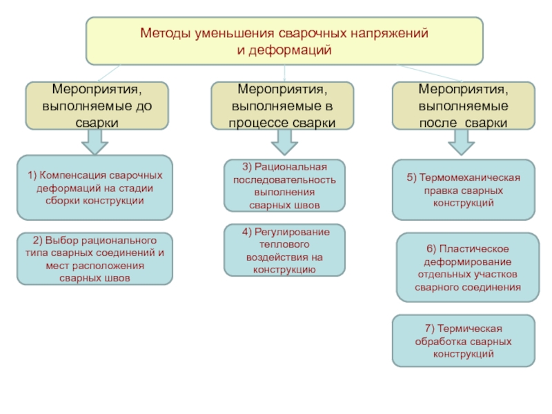 Последовательность выполнения сварных швов должна быть такой, чтобы деформации от сварки последующего шва, компенсировали деформации от предыдущих швов, а также ранее выполненные швы не должны препятствовать свободному протеканию деформаций, возникающих при сварке последующего шва.