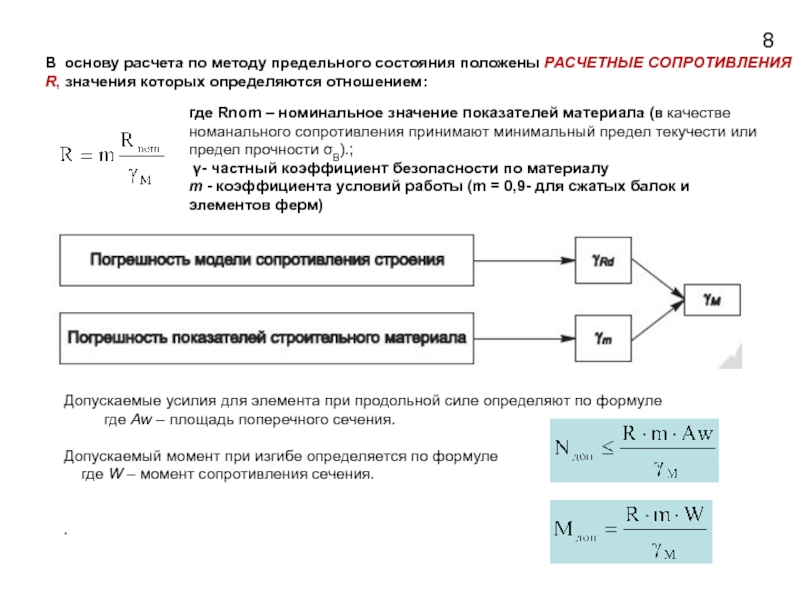 где Rnom – номинальное значение показателей материала (в качестве номанального сопротивления принимают минимальный предел текучести или предел прочности σВ).;