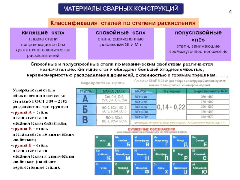 группа В – сталь поставляется по механическим и химическим свойствам (наиболее дорогостоящие стали).