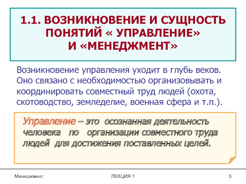 1.1. ВОЗНИКНОВЕНИЕ И СУЩНОСТЬ ПОНЯТИЙ « УПРАВЛЕНИЕ»