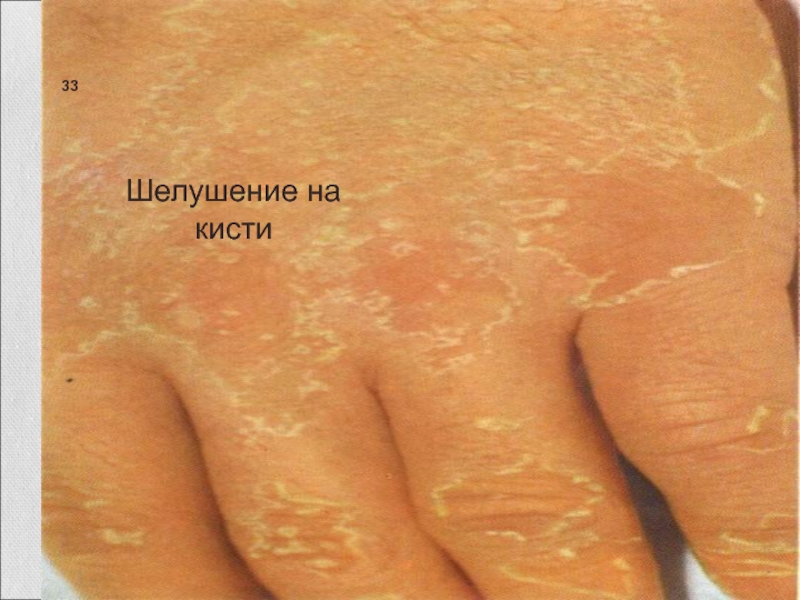 Сохранение прочной связи между ороговевшими клетками в толстых слоях эпидермиса на ладонях и подошвах объясняет крупнопластинчатый характер шелушения в этих местах.