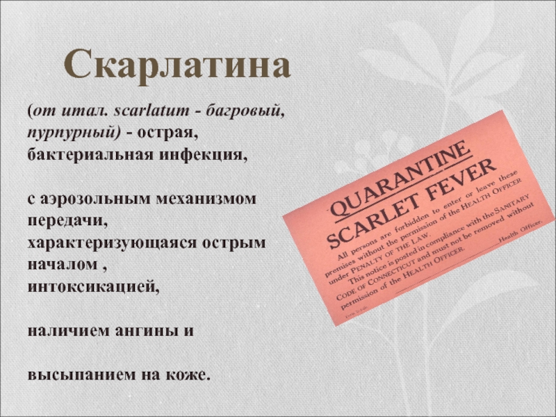 Слайд 2(от итал. scarlatum - багровый, пурпурный) - острая, бактериальная инфекция,