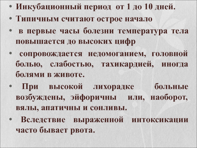 Слайд 18Инкубационный период от 1 до 10 дней.