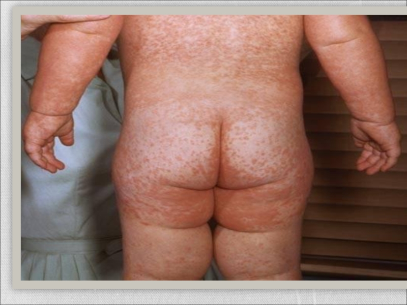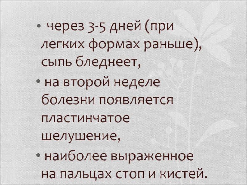 Слайд 32 через 3-5 дней (при легких формах раньше), сыпь бледнеет,