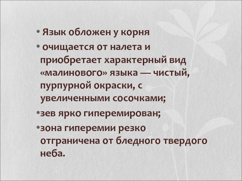 Слайд 22Язык, сначала обложенный серовато-белым налётом,