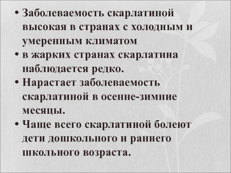 в жарких странах скарлатина наблюдается редко.