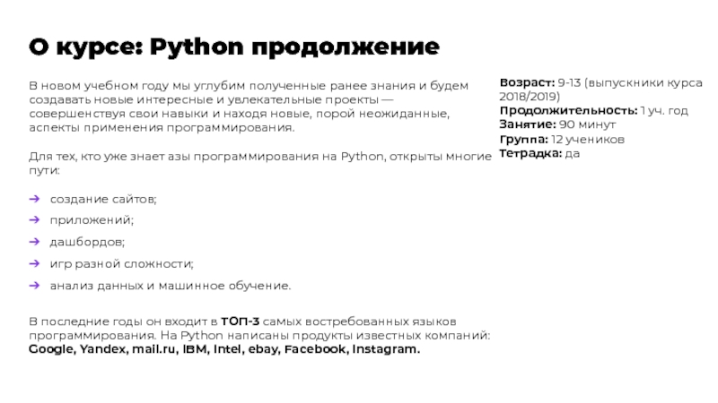 Возраст: 9-13 (выпускники курса 2018/2019)