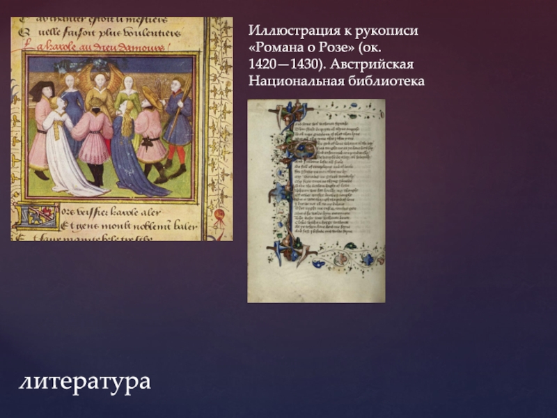 литератураИллюстрация к рукописи «Романа о Розе» (ок. 1420—1430). Австрийская Национальная библиотека