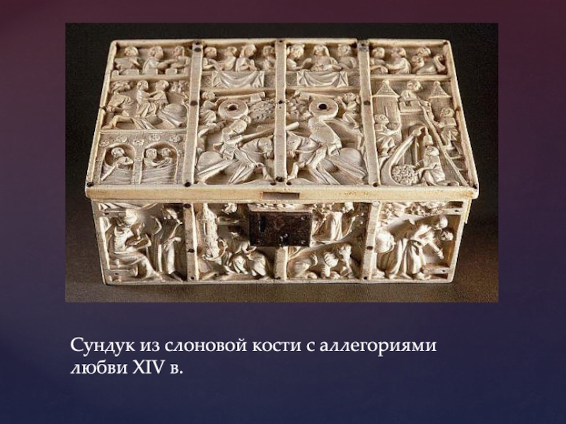 Слайд 15Сундук из слоновой кости с аллегориями любви XIV в.