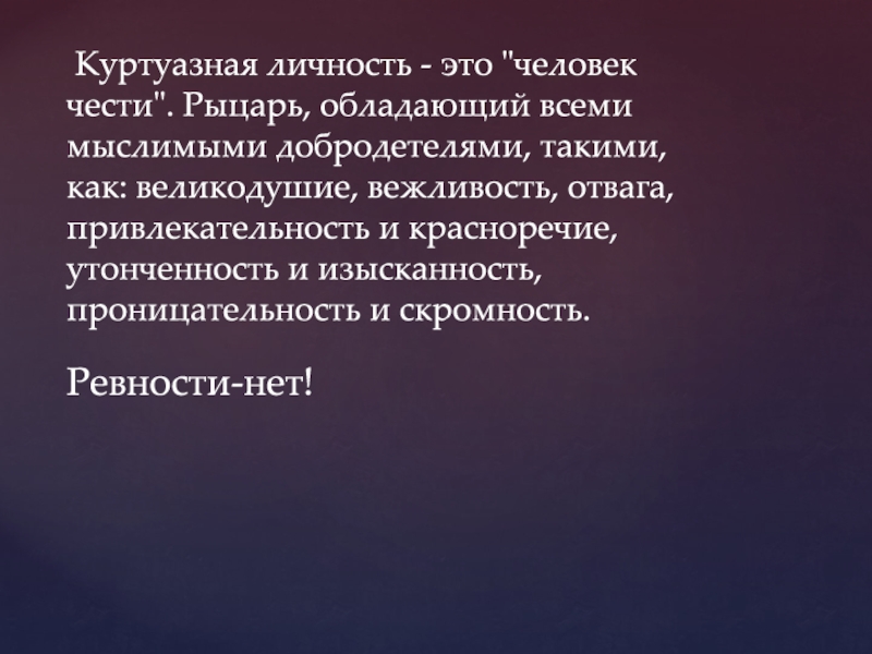 Куртуазная личность - это "человек чести". Рыцарь, обладающий всеми