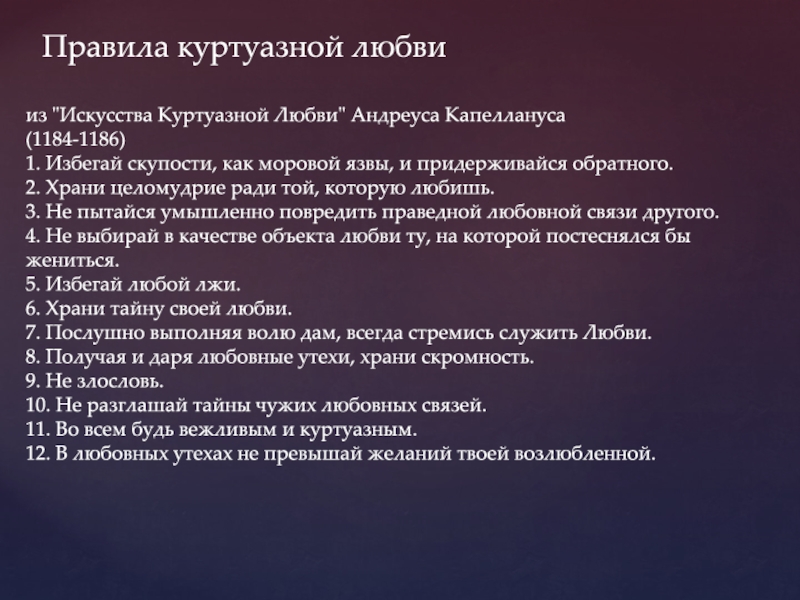 из "Искусства Куртуазной Любви" Андреуса Капеллануса
