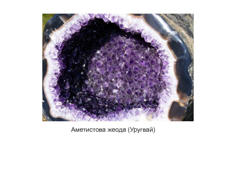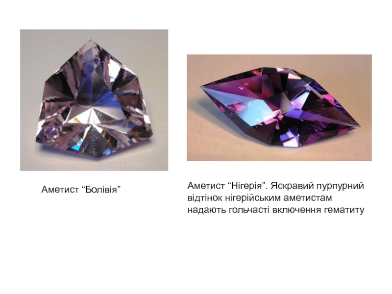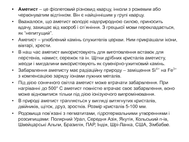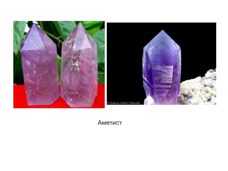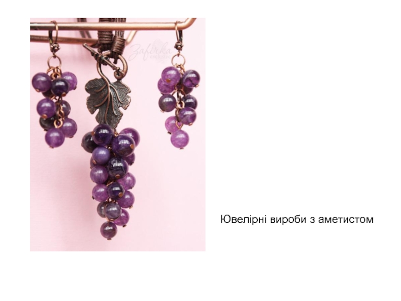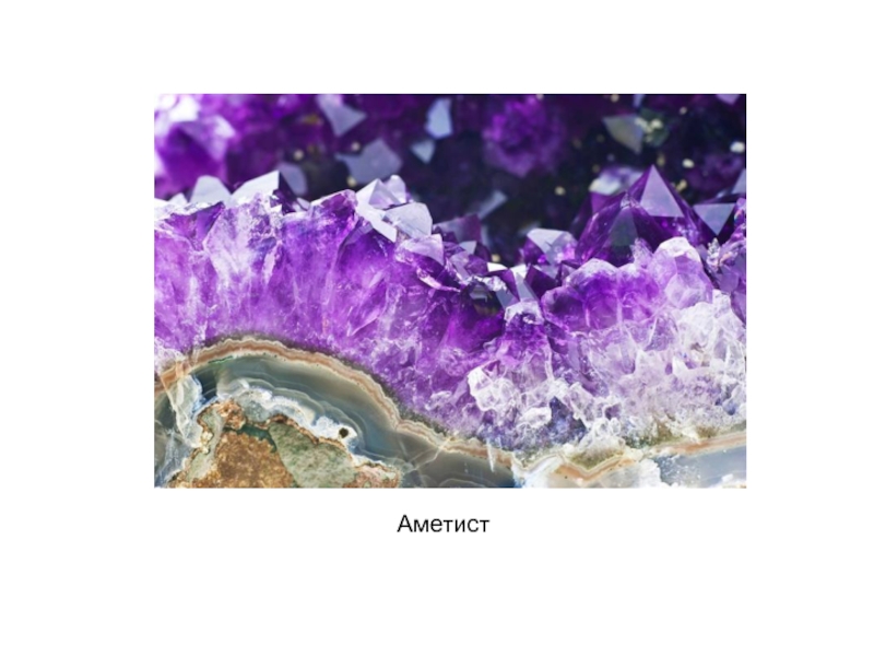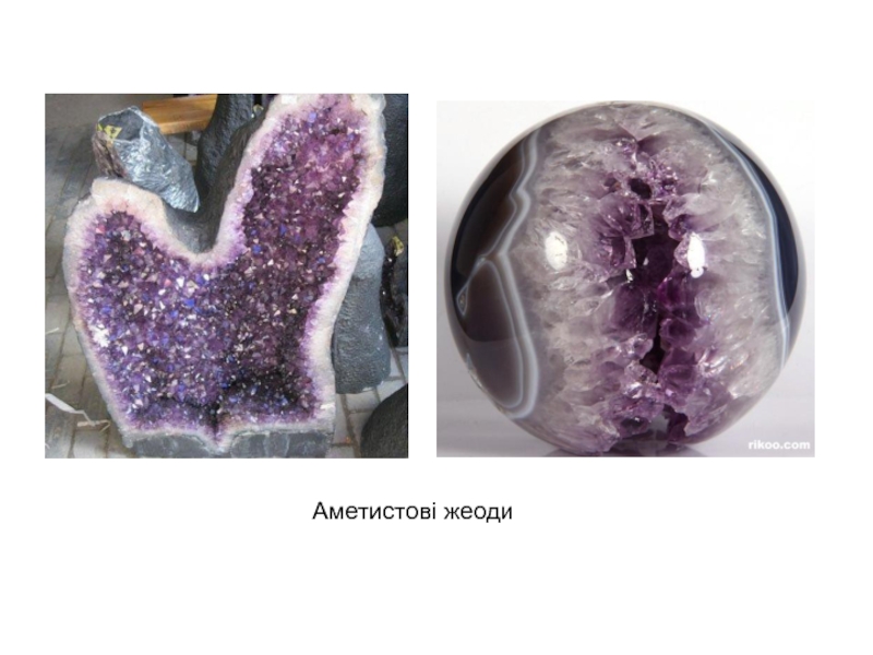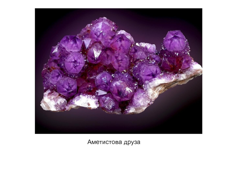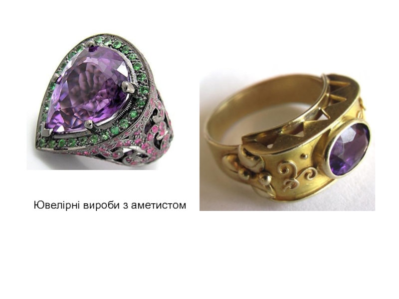 Слайд 22Аметист – це фіолетовий різновид кварцу, інколи з рожевим або
