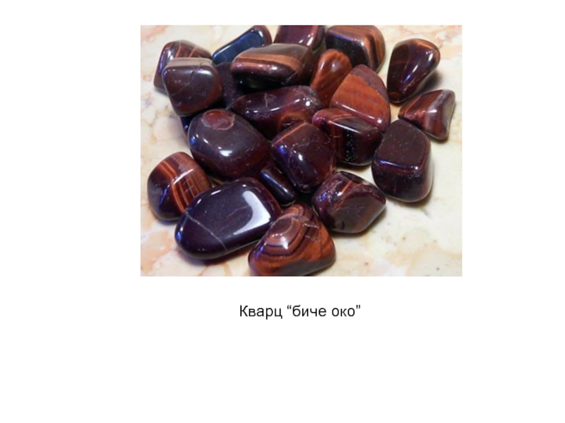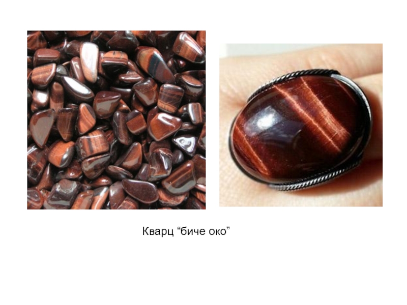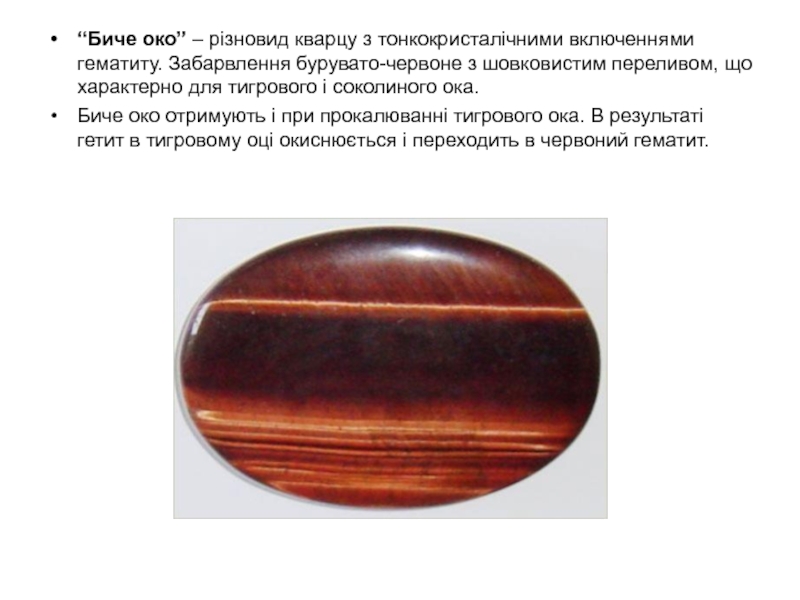 Слайд 68“Биче око” – різновид кварцу з тонкокристалічними включеннями гематиту. Забарвлення