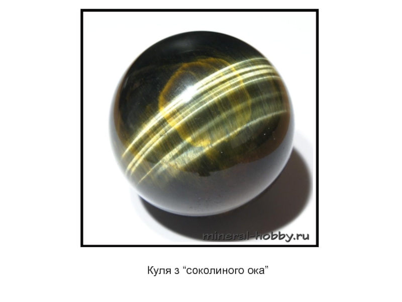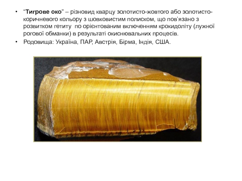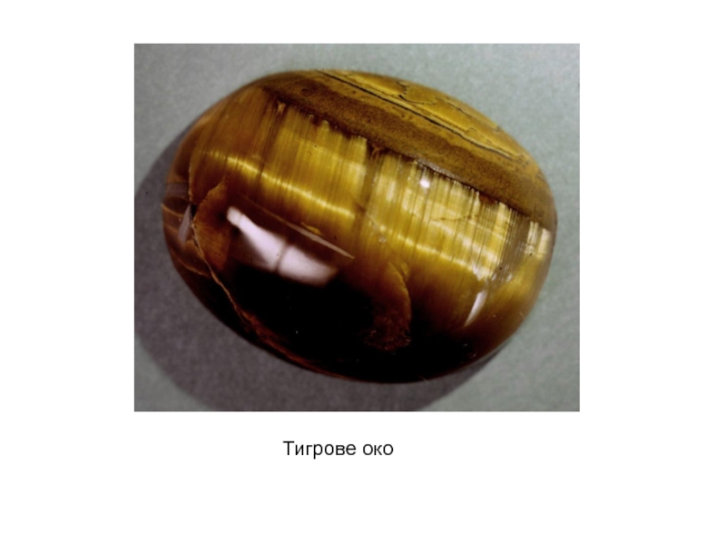 Слайд 55“Тигрове око” – різновид кварцу золотисто-жовтого або золотисто-коричневого кольору з